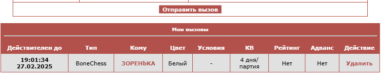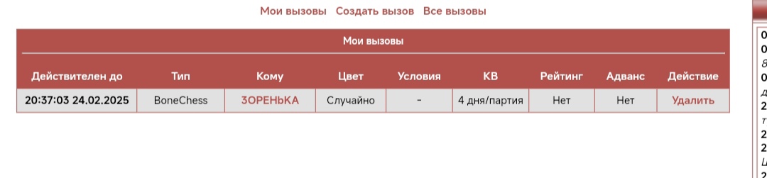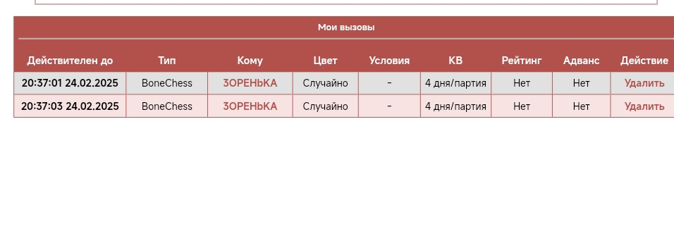 3OPEHbKA . Если вдруг 2-я партия не начнётся до 00:00 мск. 24.02 .,то игроку