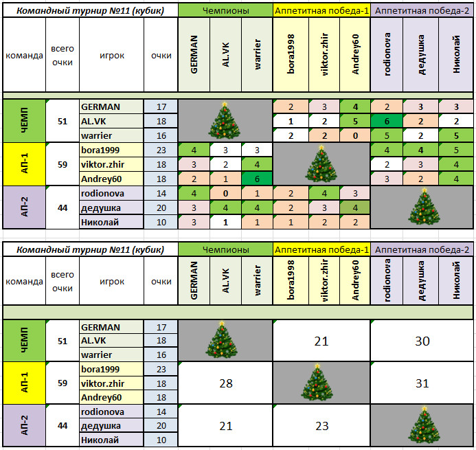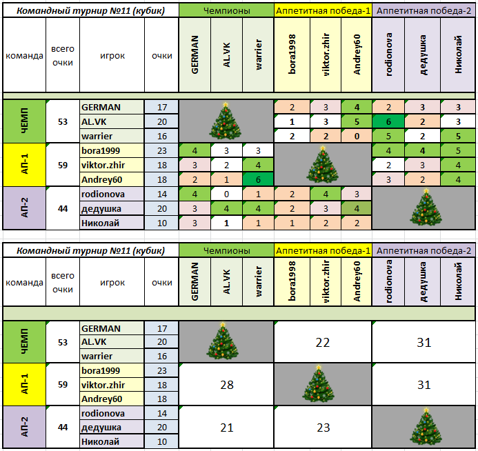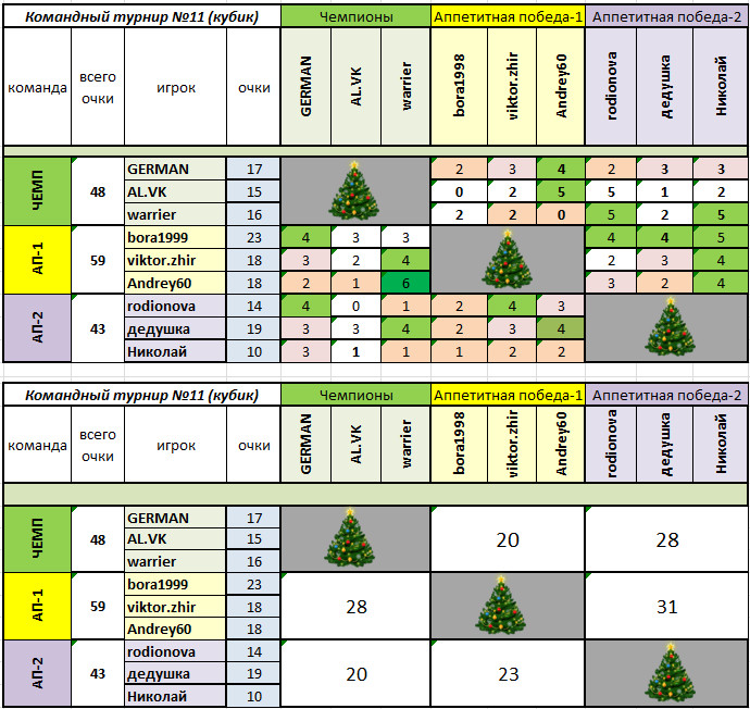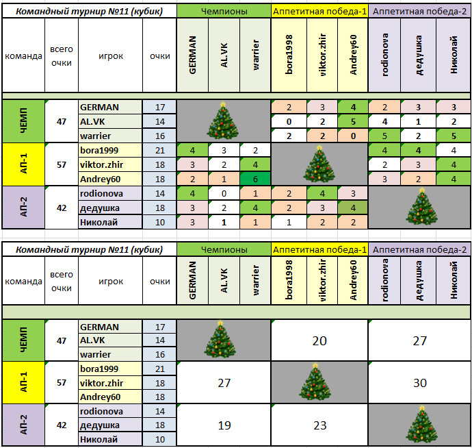 итого:Николай(АП-2)vsAL.VK(ЧЕМП.)2-3AL.VK (ЧЕМП.)vsviktor. zhir(АП-1)3-2Команда играет 108 игр